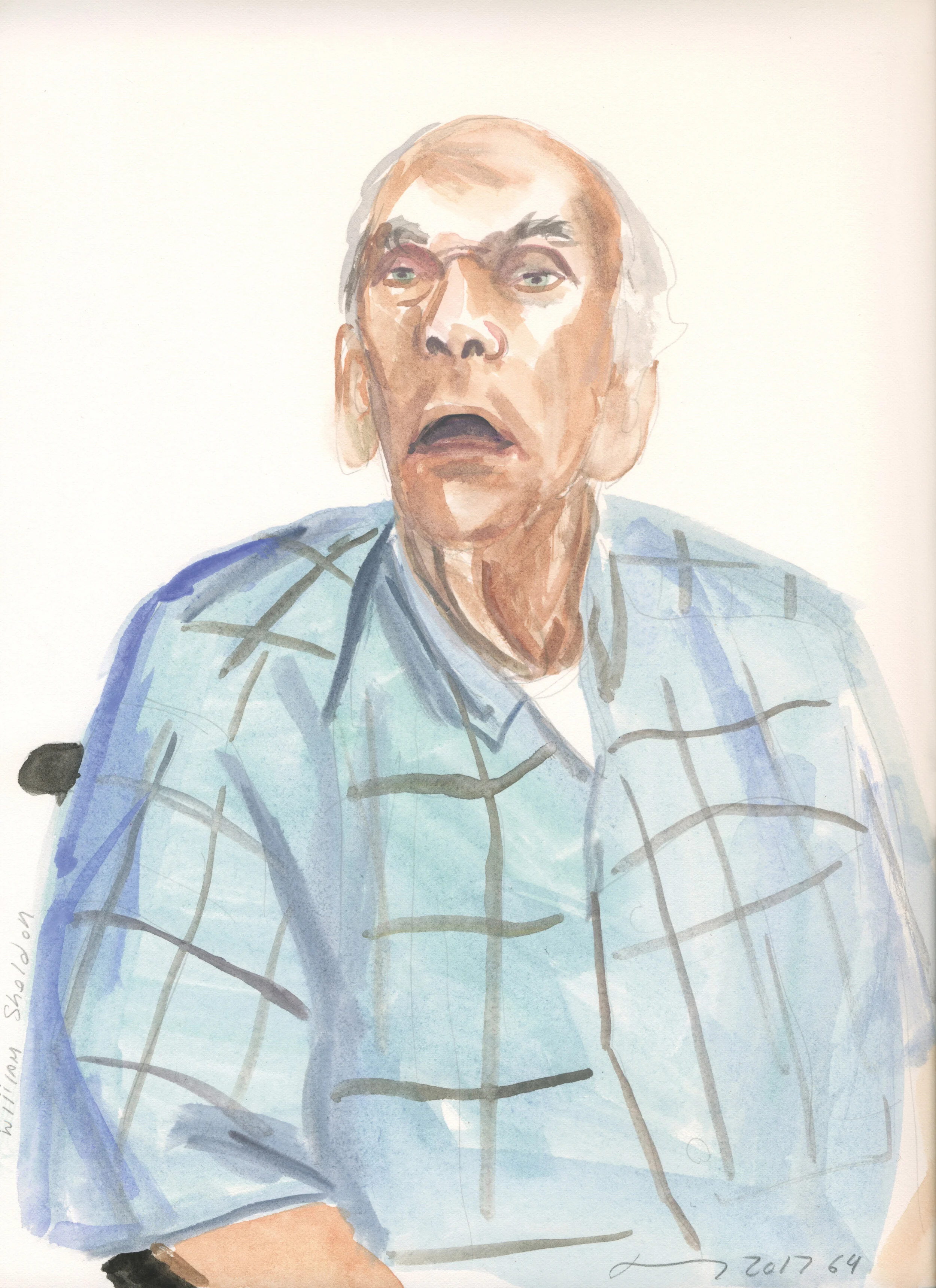 In 2017, the Hebrew Home at Riverdale, a nursing home in the Bronx, turned one hundred. In honor of this anniversary, I was invited to paint one hundred portraits of older and disabled residents of the home that summer from direct observation. Like many of my portrait projects, 100/100 focused on overlooked members of society. The portrait subjects were empowered in an artistic process that affirmed their dignity while making visible the beauty and wisdom that come with age. I explored many questions in the project, including: What is important at the end of life? In the face of loss, can there still be joy? How do past experiences fuel happiness in the present? This residency led to a traveling exhibition that included all one hundred watercolor portraits paired with photographs of the subjects posing with their portraits as well as a 20-minute documentary film that I co-directed with Laure Sullivan, with music by Aaron Jay Kernis.